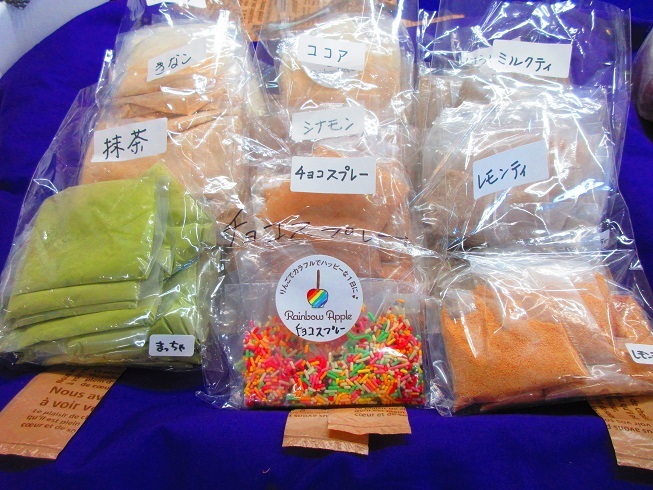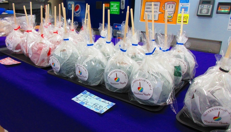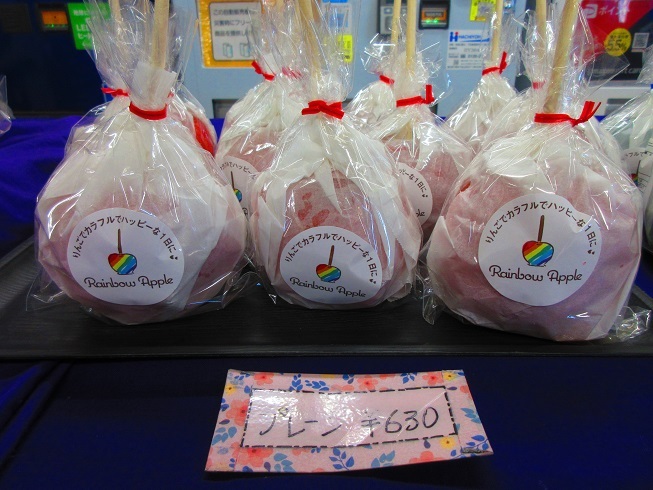 可愛いパッケージのりんご飴がたくさん並んでいるのを見るとワクワクします!