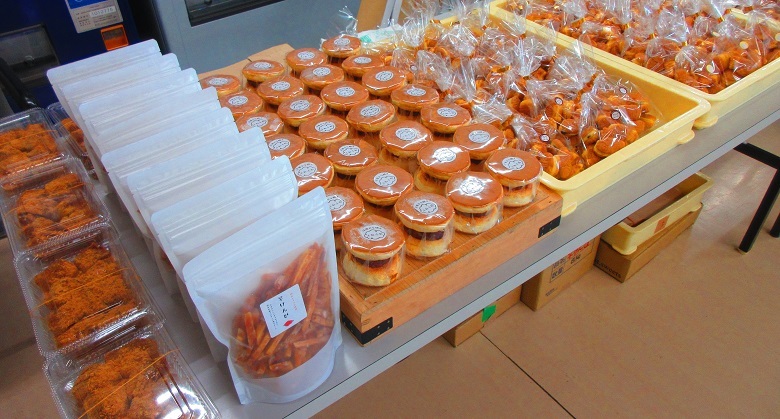 洋風どら焼き、プチたい焼き、干し芋、芋けんぴ、大福、わらび餅を持ってきてくださいました!